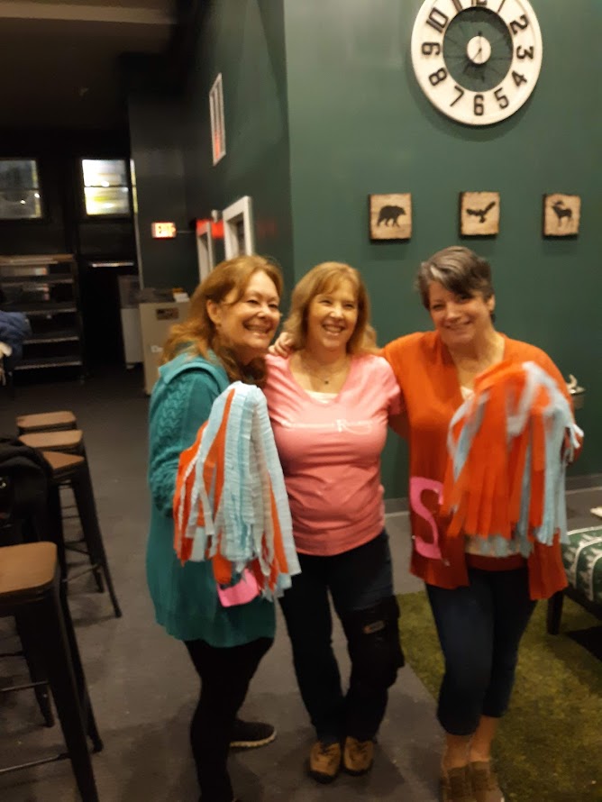 “and may cause severe social or economic losses due to not only my own actions, inaction, or negligence, but also to the action, inaction, or negligence of others or conditions of the premises or of any equipment used.” Apparently, my axe throwing could result in lawsuits. No kidding. As I already stated, no worries, because I wasn’t going to be touching an axe. Nedra made pom-poms and cheers for us to do at a safe distance from the axes. There would be no attempt at cartwheels or lifts, so we were safe, along with our heirs, executors, and administrators.
